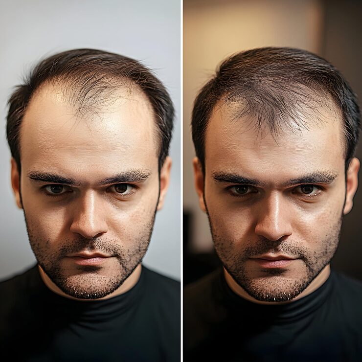 A hair transplant moves healthy hair roots (grafts) from a donor area (usually the back or sides of the scalp) to thinning or bald areas.