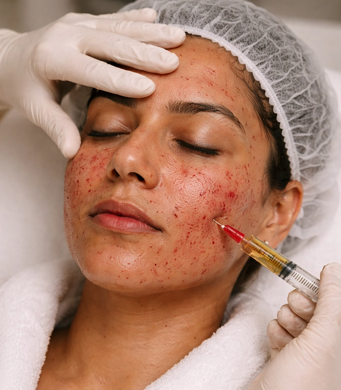 - PRP with Microneedling: Helps natural skin repair and stimulates collagen production